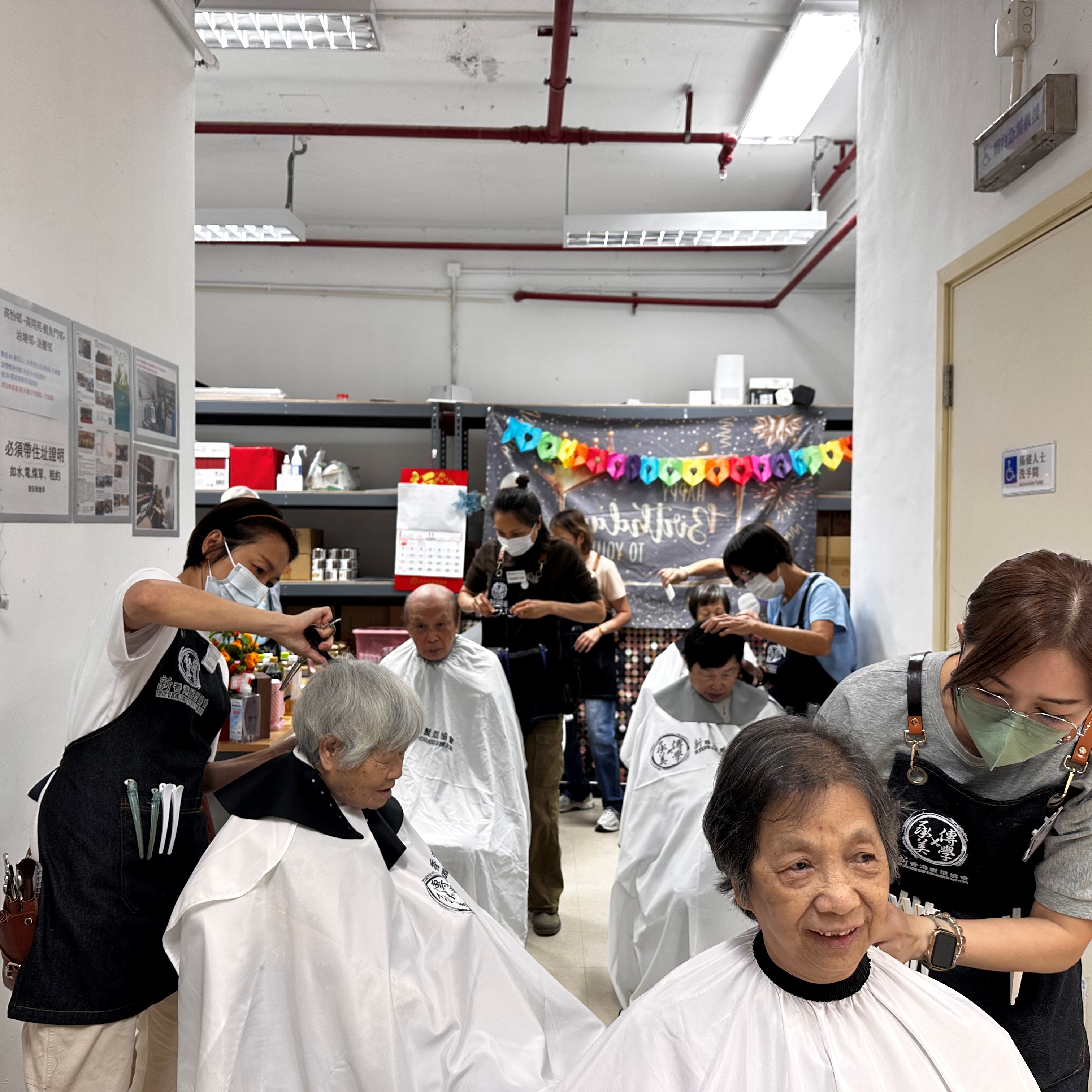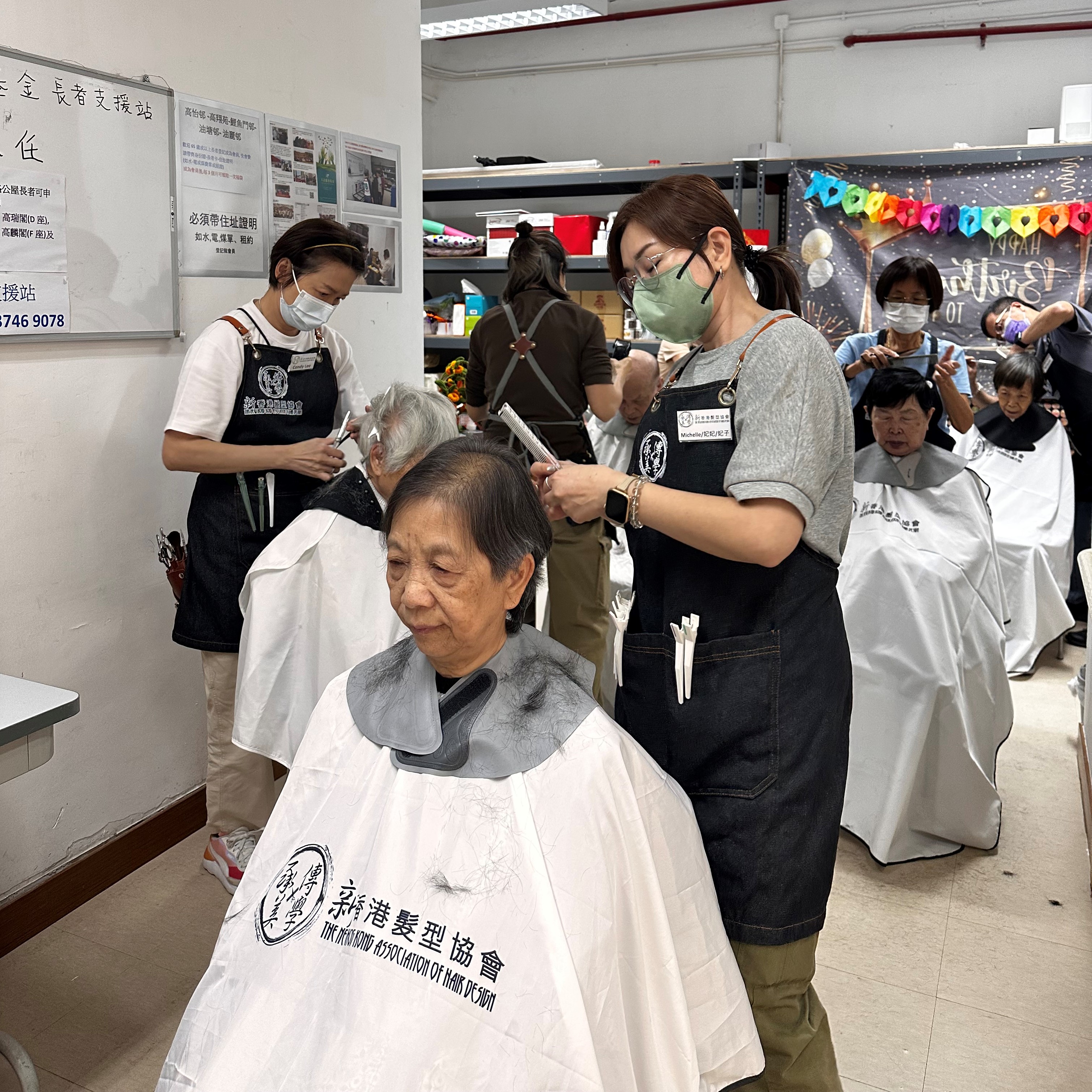 2025年11月18日,長者支援站繼續與新香港髮型協會「承傳美學—義剪隊」合作,為會員提供理髮服務。這項義務剪髮服務約每兩個月舉行一次。此次活動共有 28 位會員參加。義工髮型師們展現了高超的技巧、專業素養、高效能和愛心,讓使用服務的長者會員們非常滿意。