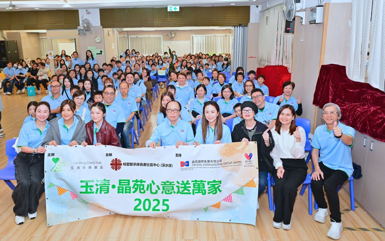 由玉清慈善基金主辦、明愛鄭承峰長者社區中心(深水埗)合辦,並獲晶苑國際集團有限公司及晶苑義工全力支持的「玉清・晶苑心意送萬家」活動,於11月29日在深水埗順利舉行,為區內400位獨居或雙老長者送上福袋及生活物資,傳遞關懷與溫暖。