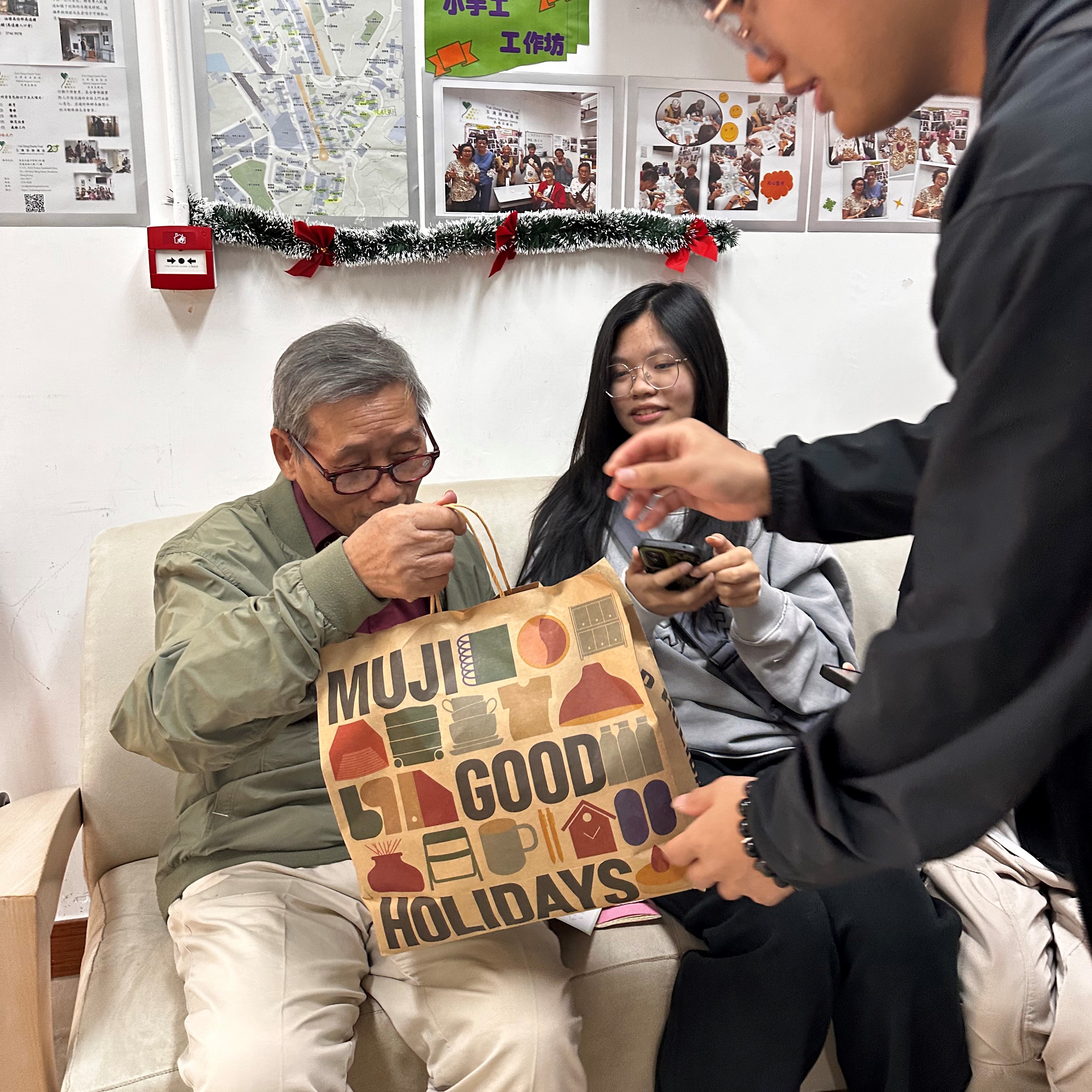 在2025年12月13日上午進行, 是次自發策劃及舉辦「瑜伽环、手機班及上門探訪」義工活動,關懷高怡邨長者,教導長者一起做毛巾操、交談,學習手機, 最後學生義工送上預備好的心意包送給長者。這兩次共服務接待共20位會員。會員表示希望日後可再次參加。