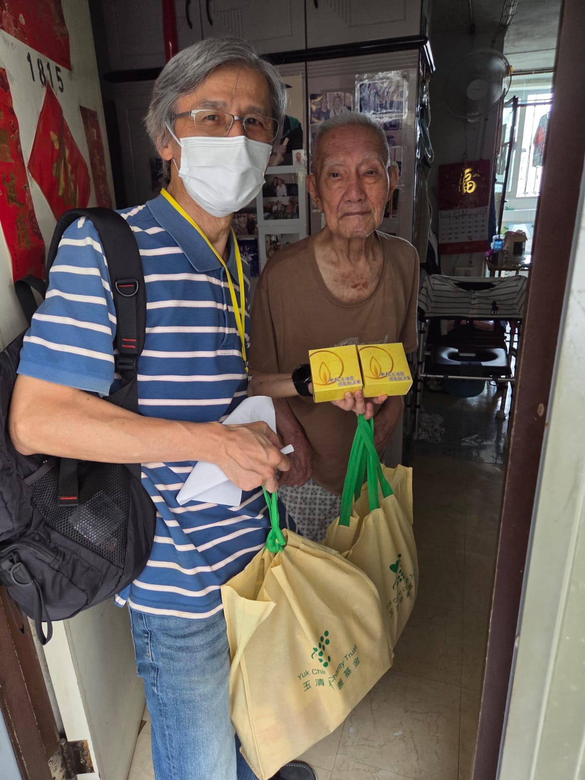 中秋节将至, 玉清慈善基金会将于9月22日组织了本会两中心义工们, 一起上门探访派发月饼及心意包给行动不便, 独居及两老同住会员长者, 希望在节日期间为他们带来欢乐, 我们衷心感谢香港中华煤气公司赞助了100个月饼及两中心义工抽空时间到石围角村参与上门探访长者并派发心意包,让会员带来温暖及关怀。